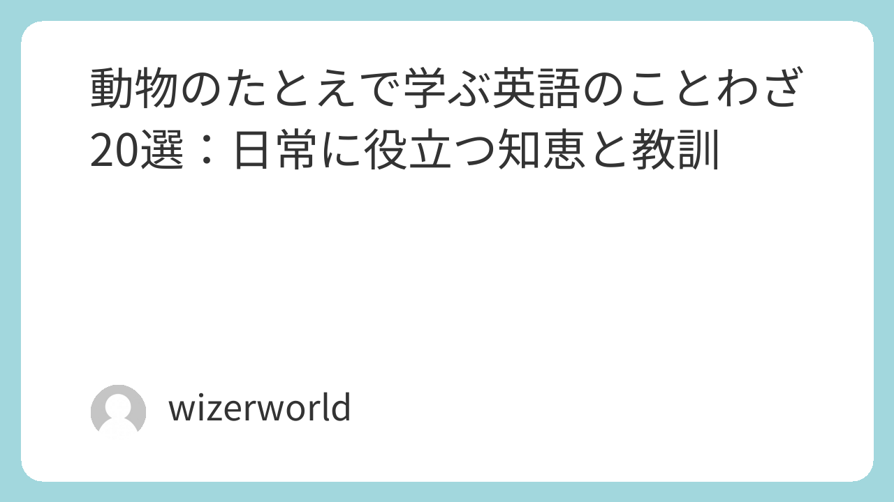 動物たちは古くから私たちの生活に密接に関わり、その行動や特徴はしばしば人間の性質や状況を比喩的に表現するために用いられてきました。英語のことわざの中にも、動物を登場させることで、より深く、より鮮やかに人生の教訓や社会の真理を伝えるものが数多く存在します。この記事では、「動物のたとえ」をテーマにした英語のことわざを20個厳選し、その意味と背景を日本語訳とともにご紹介します。英語学習や、ことわざに隠された動物たちの知恵に触れる機会として、ぜひお役立てください。