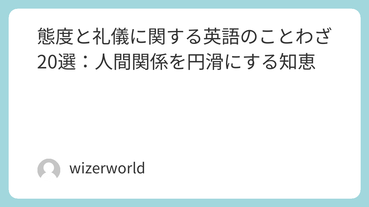 私たちの日常において、他者との関わりは避けられません。その中で、個人の「態度」や「礼儀」は、人間関係の質を大きく左右する重要な要素となります。良い態度と適切な礼儀作法は、円滑なコミュニケーションを促進し、信頼を築く上で不可欠です。今回は、そんな「態度と礼儀」をテーマにした英語のことわざを20個ご紹介します。これらの言葉から、社会生活を豊かにするための普遍的な知恵を学びましょう。