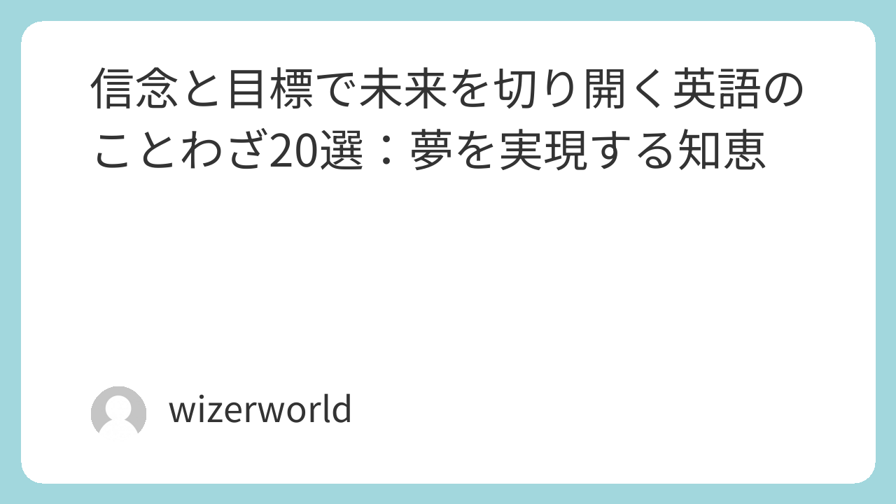 今回ご紹介した20の英語のことわざは、「信念と目標」という二つの強力な要素が、私たちの人生においていかに重要な役割を果たすかを示しています。確固たる信念は、困難に立ち向かう勇気を与え、明確な目標は、私たちを正しい方向へと導きます。