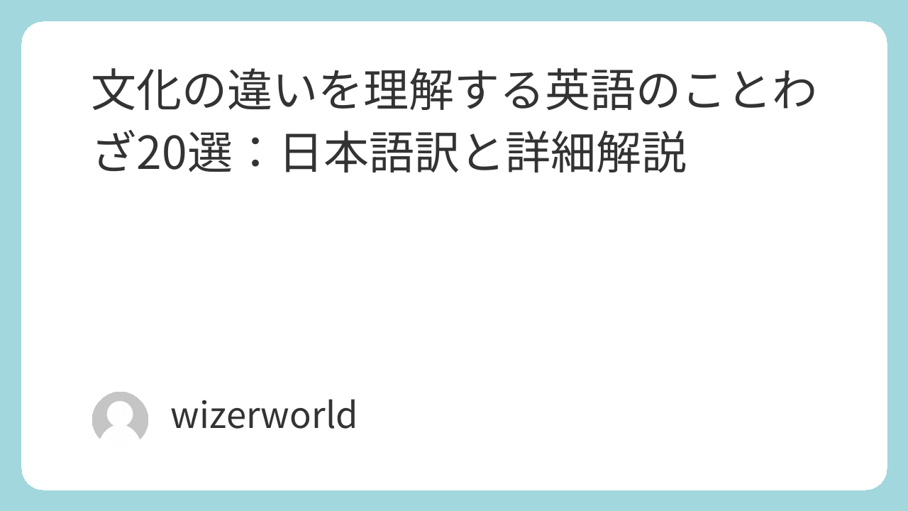 世界には多種多様な文化が存在し、それぞれの文化が独自の価値観、習慣、そして思考様式を持っています。これらの「文化の違い」を理解することは、国際社会で生きる私たちにとって不可欠な能力です。この記事では、異文化理解や国際交流に役立つ英語のことわざを20個厳選し、その日本語訳と詳細な解説を添えてご紹介します。これらの言葉から、私たちは異なる文化間の共通点と相違点を探り、多様性を受け入れるための知恵を得ることができるでしょう。