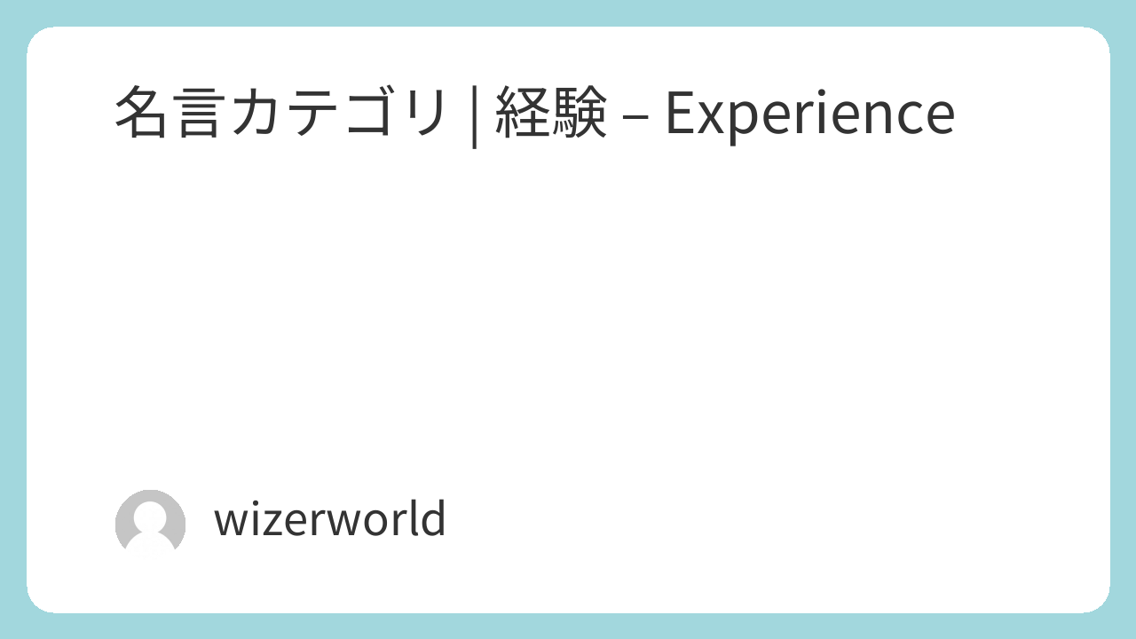 | Experience is the name every one gives to their mistakes. 経験とは、皆が失敗につける名前のことだ。 Oscar Wilde |