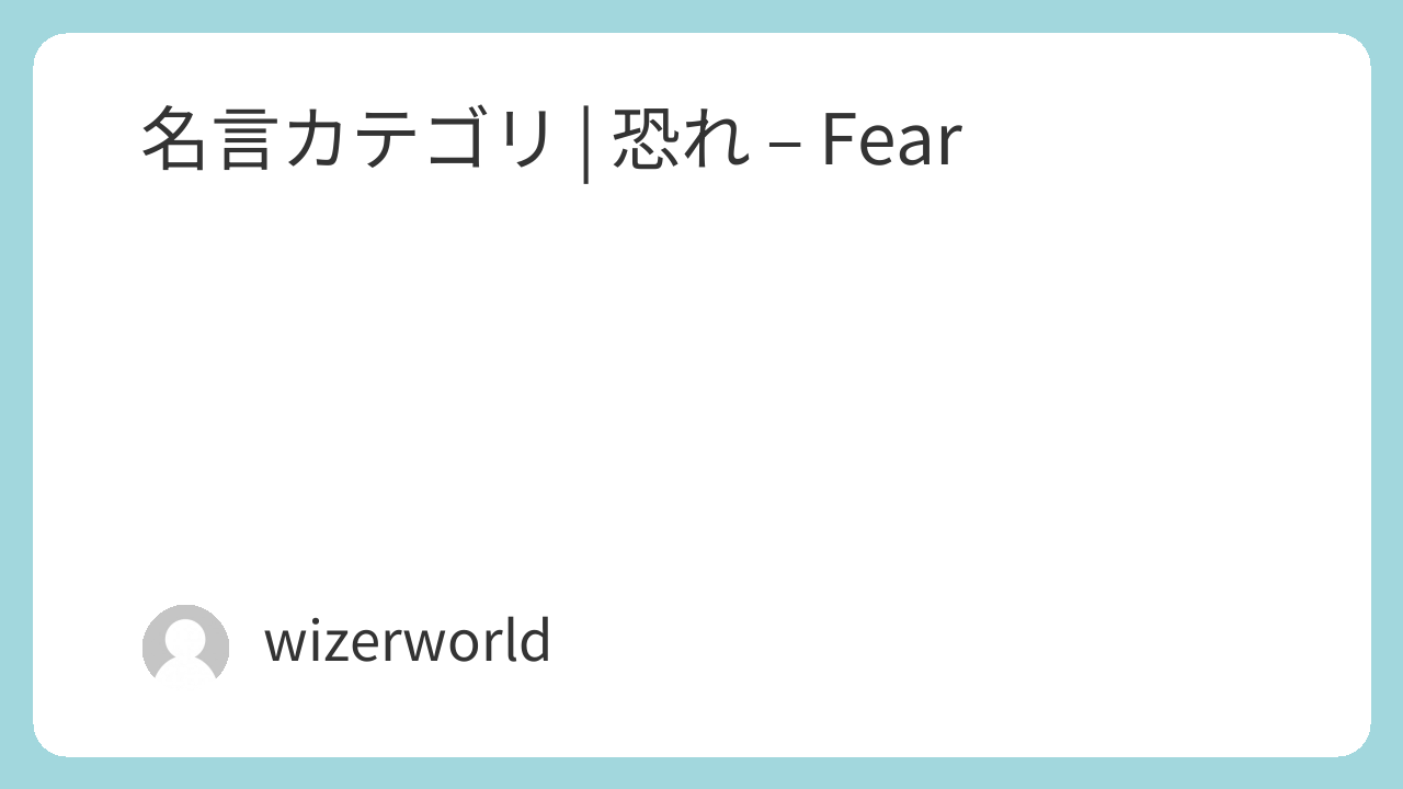 恐ろしいのは、死でも苦難でもなく、死や苦難への恐れである。