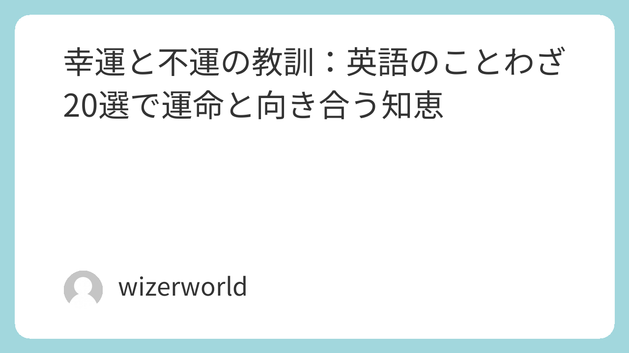 この記事では、「幸運と不運」をテーマに厳選した英語のことわざを20個ご紹介します。それぞれのことわざには、日本語訳と詳しい解説を添え、あなたが運命を受け入れ、幸運を最大限に活かし、不運を乗り越えるためのヒントとなるように構成しました。これらの言葉が、あなたが人生の浮き沈みに柔軟に対応し、より穏やかで充実した日々を送るための一助となることを願っています。