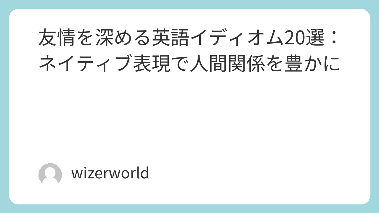 日常生活や映画、ドラマなどで今回紹介したイディオムに出会ったら、ぜひその意味を思い出し、積極的に使ってみてください。きっとあなたの英語表現の幅が広がり、人間関係を語る上で大きな助けとなるでしょう。英語学習を楽しみながら、素晴らしい友情を育んでいってください!