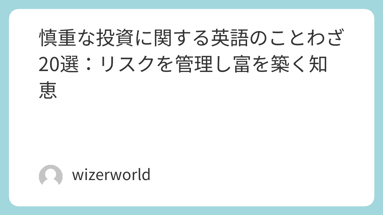 投資は、資産を増やし、将来の経済的安定を築く上で重要な手段です。しかし、そこには常にリスクが伴います。賢明な投資家は、衝動的な行動を避け、長期的な視点と慎重な判断をもって臨みます。古くから伝わることわざの中には、まさにこの「慎重な投資」の精神を体現し、リスクを管理しつつ富を築くための普遍的な知恵が凝縮されています。この記事では、そんな英語のことわざを20個ご紹介し、それぞれの日本語訳とともにその深い意味を探ります。これらのことわざは、投資の原則を学び、より賢明な金融上の意思決定を行うための貴重な指針となるでしょう。