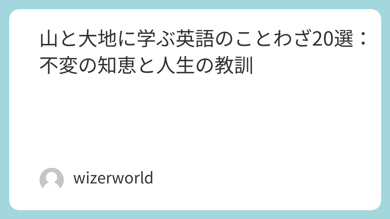 そびえ立つ山々、そして私たちを支える広大な大地は、古くから人々に不動の存在として畏敬の念を抱かせ、その力強さや不変性から多くの教訓や哲学が生まれました。英語のことわざの中にも、山の高潔さ、大地の恵み、岩の堅固さなどを借りて、人間の精神、困難への立ち向かい方、人生の真理を表現するものが数多く存在します。この記事では、「山と大地」をテーマにした英語のことわざを20個厳選し、その意味と背景を日本語訳とともにご紹介します。英語学習の一助として、また山や大地が教えてくれる深い知恵に触れる機会として、ぜひお役立てください。