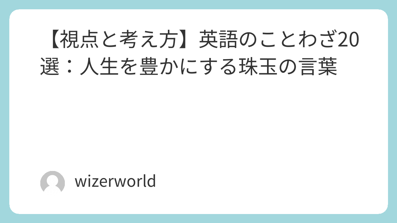 【視点と考え方】英語のことわざ20選:人生を豊かにする珠玉の言葉