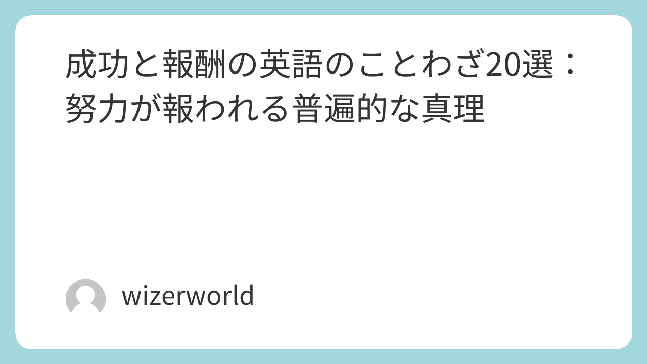 私たちの人生において、「成功」とは目標達成の証であり、「報酬」はその過程で得られる喜びや対価です。古くから世界中で語り継がれてきたことわざの中には、これら成功と報酬に関する普遍的な真理が凝縮されています。この記事では、「成功と報酬」をテーマにした英語のことわざを20個厳選し、それぞれの日本語訳とともにご紹介します。これらの言葉が、皆さんの目標達成へのモチベーションを高め、努力が報われる喜びを再認識するきっかけとなれば幸いです。